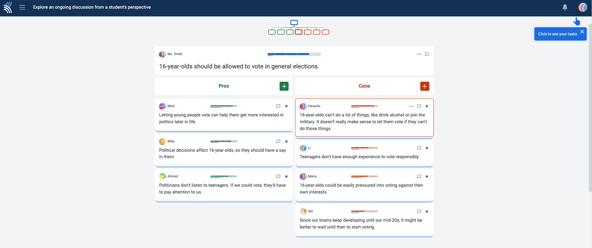 A classroom discussion between six people